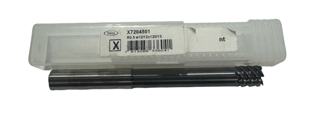 Fraisa 12mm Carbide End Mill 6 Flute Necked 0.5mm Radius AlCrN Coated 120mm OAL