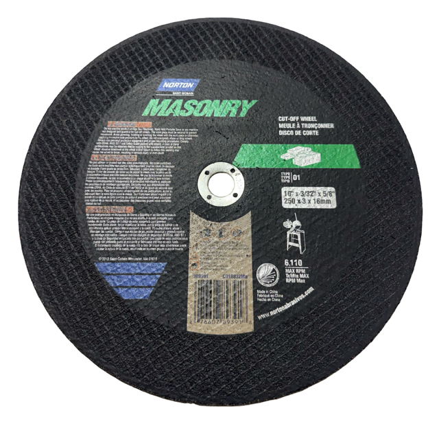 Norton 10" x 3/32" x 5/8" Masonry Stationary Cut-Off Wheel Type 1
